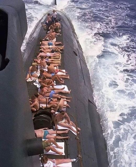 This photo makes me nervous; what if a rogue wave came along? A submarine does not have a lot of freeboard. I could see a disaster if...