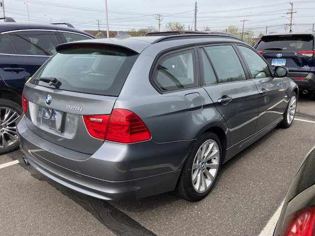 Well, we'd refer to this as the Curbside Classic effect (meaning that as soon as you see something about something in writing, you are soon to see it IRL) on some other sites, but today at the airport, I found a 6sp RWD E91 parked directly behind mine as I went to pick up my car from airport parking.