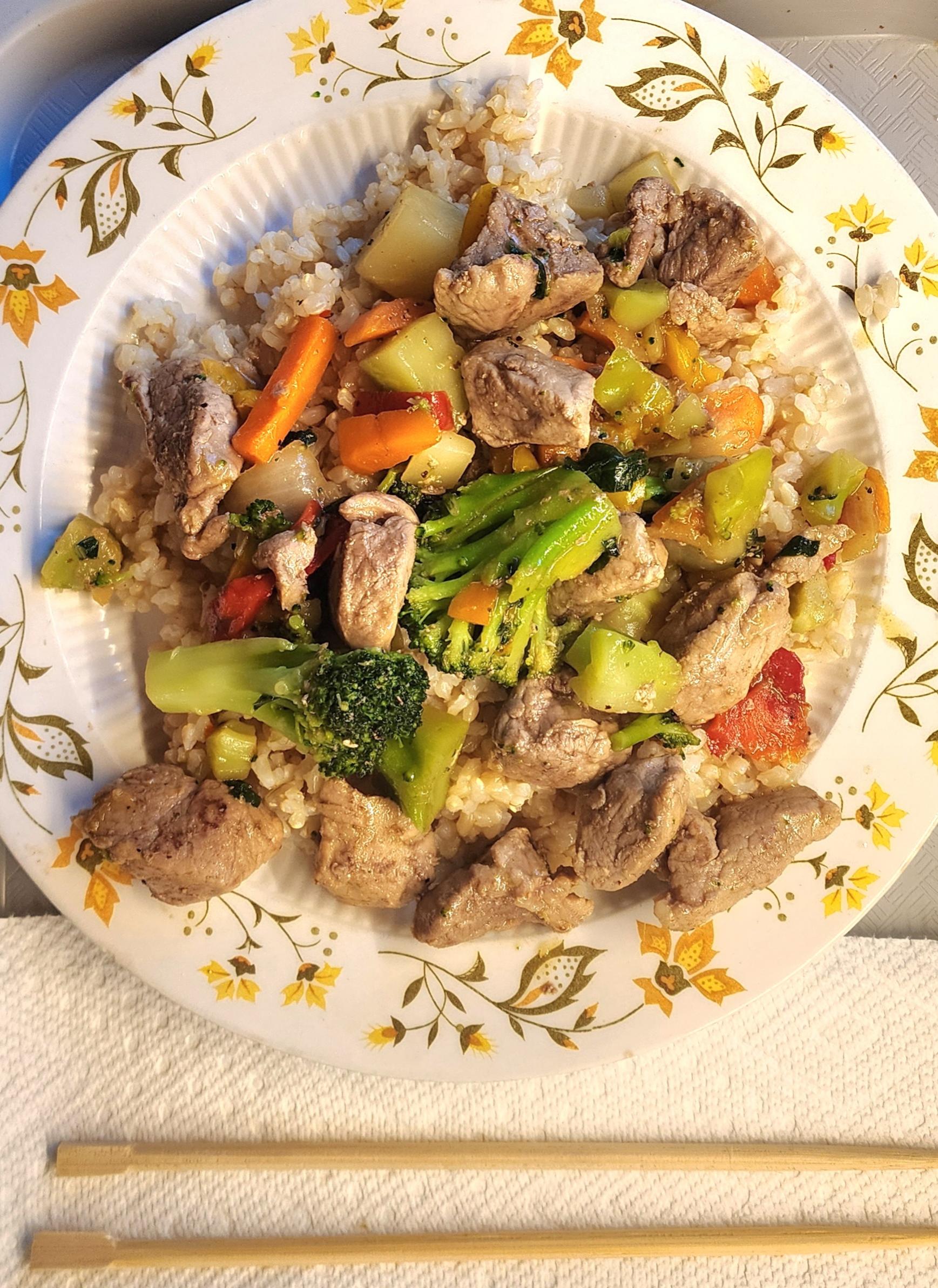 Local market had pork tenderloin on sale for $2.69 lb. Cant beat that. Bought a few. Pork tenderloin stir fry..