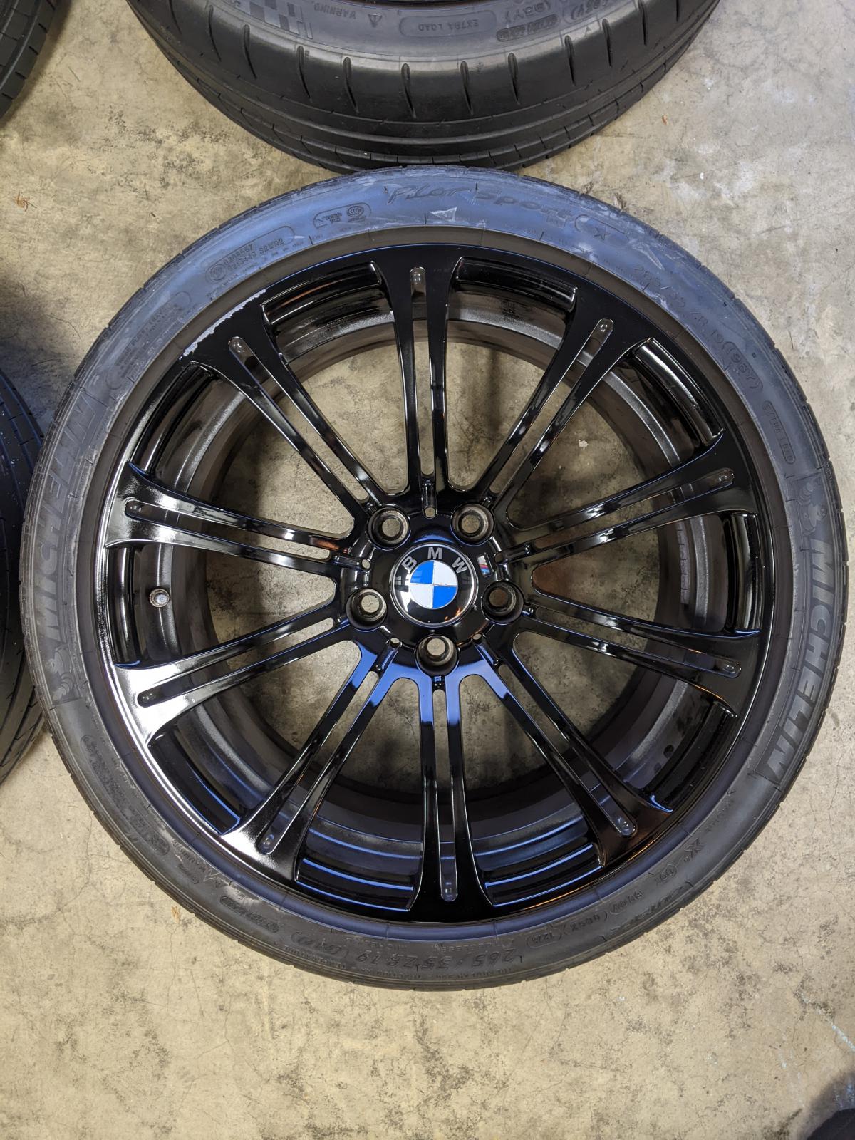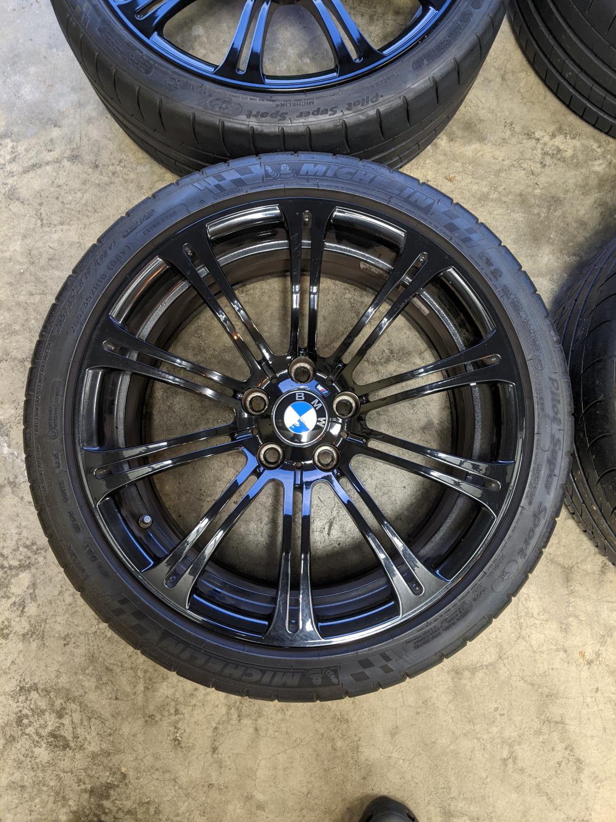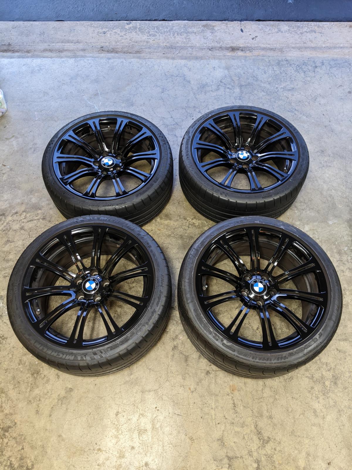 Hi there. Looking to sell a set of 220M wheels with Michellin Pilot Super Sport tires (F: 245/35/19 and R: 265/35/19). Some curb rash on one of the back wheels. Located in Northern VA. Looking to sell locally at the moment. Asking $600. Came off of a 2011 M3