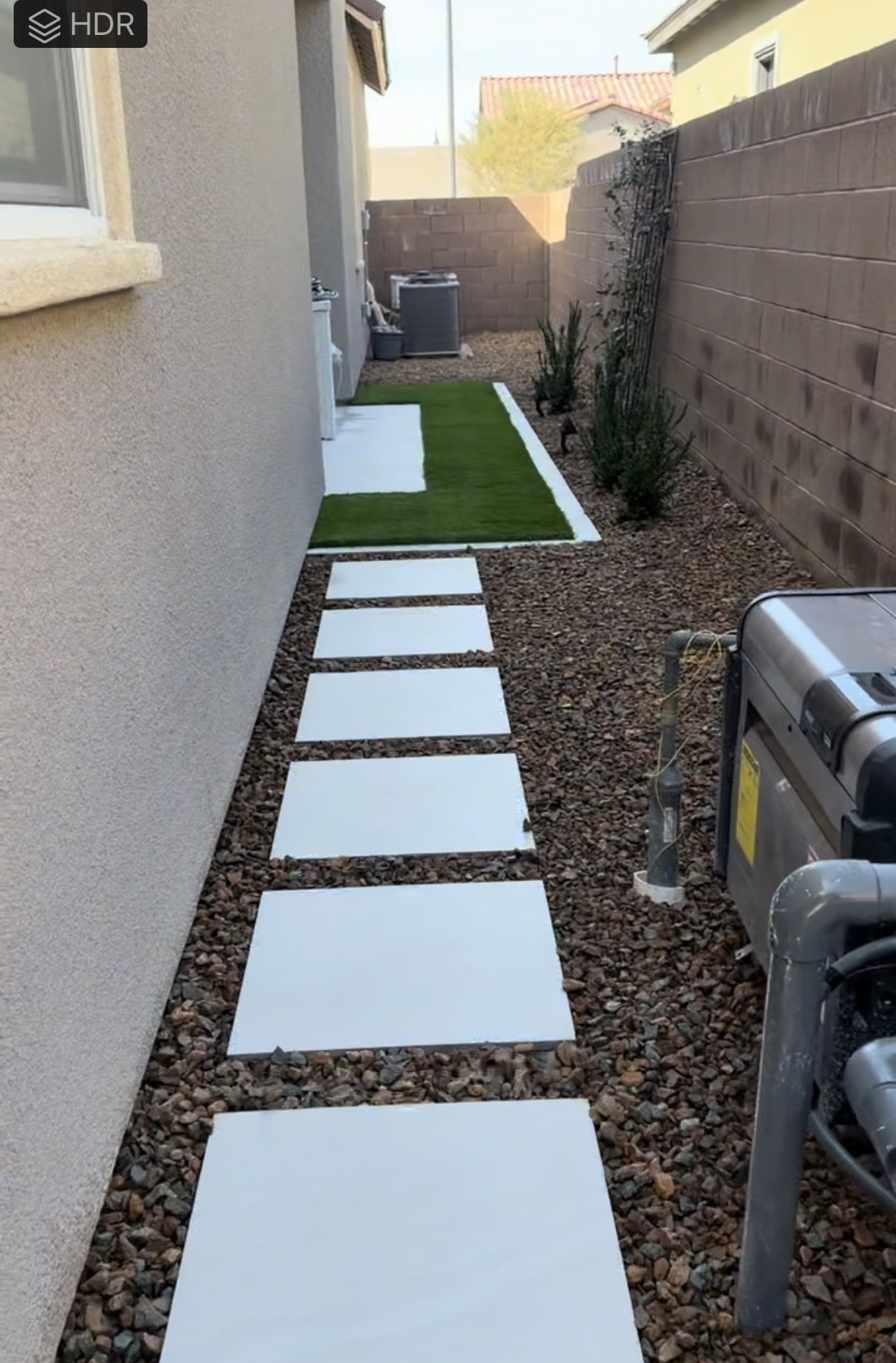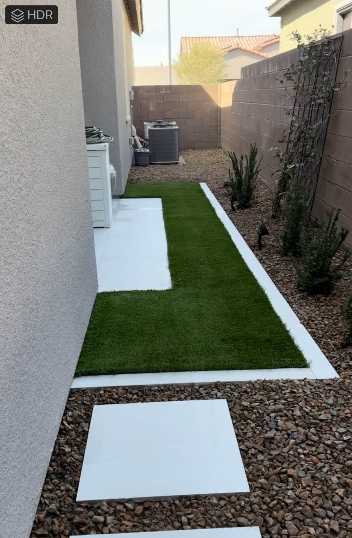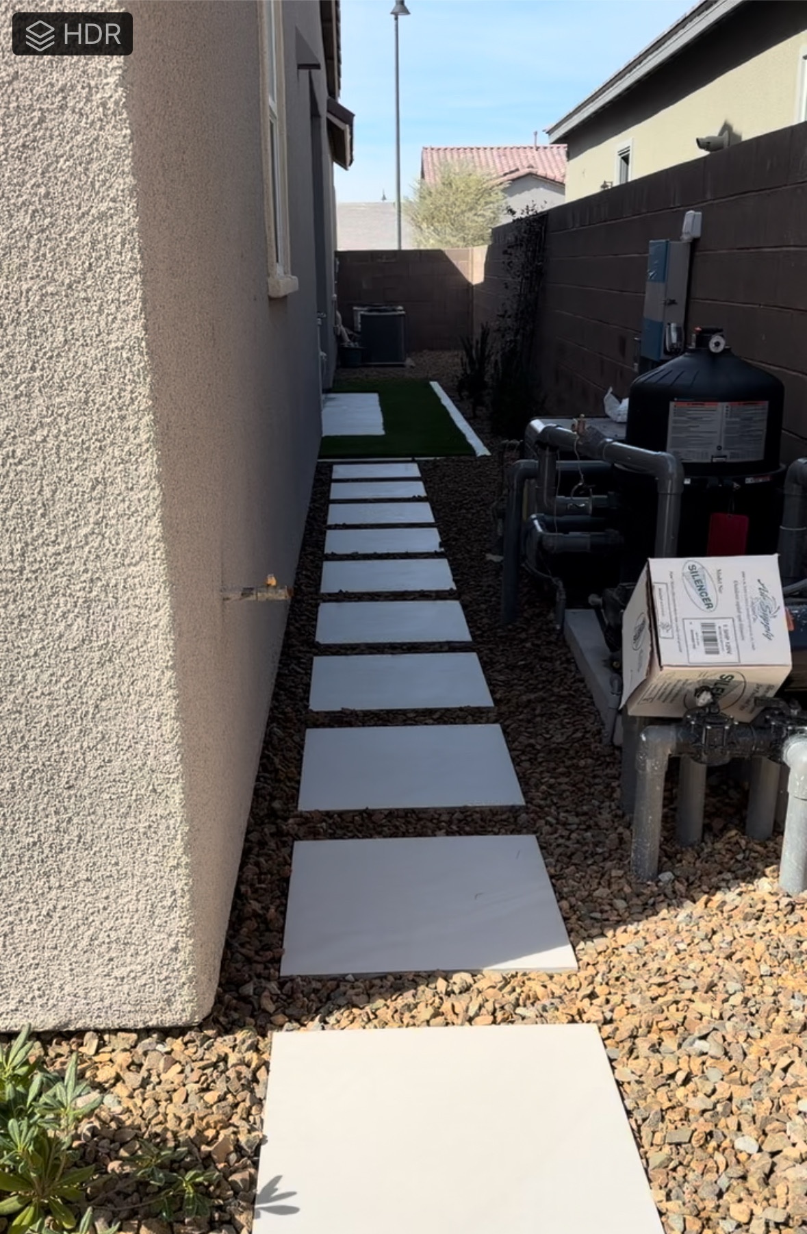 The contractors finished most of the secondary patio side today. All of the pavers and turf are in. Still lots to do on that side of the house though. There is still more vines, another Greenspire (..to total six by that side patio) and two Texas Privets to plant (..to block the view of the A/C units), and I am having a decorative gate made to obscure the pool equipment.